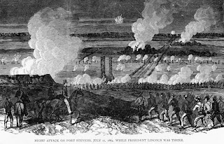 In the Battle of Fort Stevens on July 11 and July 12, 1864. President Abraham Lincoln rode out to the Fort with his wife Mary, and some officers rode out to observe the attack, and were briefly under enemy fire that wounded a Union surgeon standing next to Lincoln on the Fort Stevens parapet. On both days he was there to observe the attack, Lincoln was briefly under enemy fire by sharpshooters.