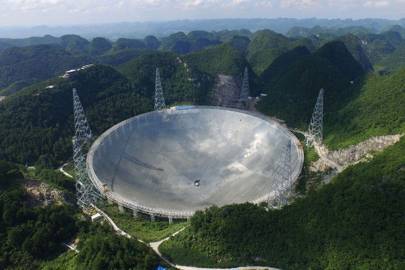 In 2016, China became a space exploration powerhouse after it fired its brand new lab Tiangong 2 into low orbit – joining the US and Russia. The telescope, made up of 4,500 triangular aluminium panels. It features the world's largest aperture, at 500 metres, and has a total area equal to 30 football fields. It not only surpasses the Arecibo Observatory – once the world’s largest single-aperture telescope – in size, but also in sensitivity and overall performance.